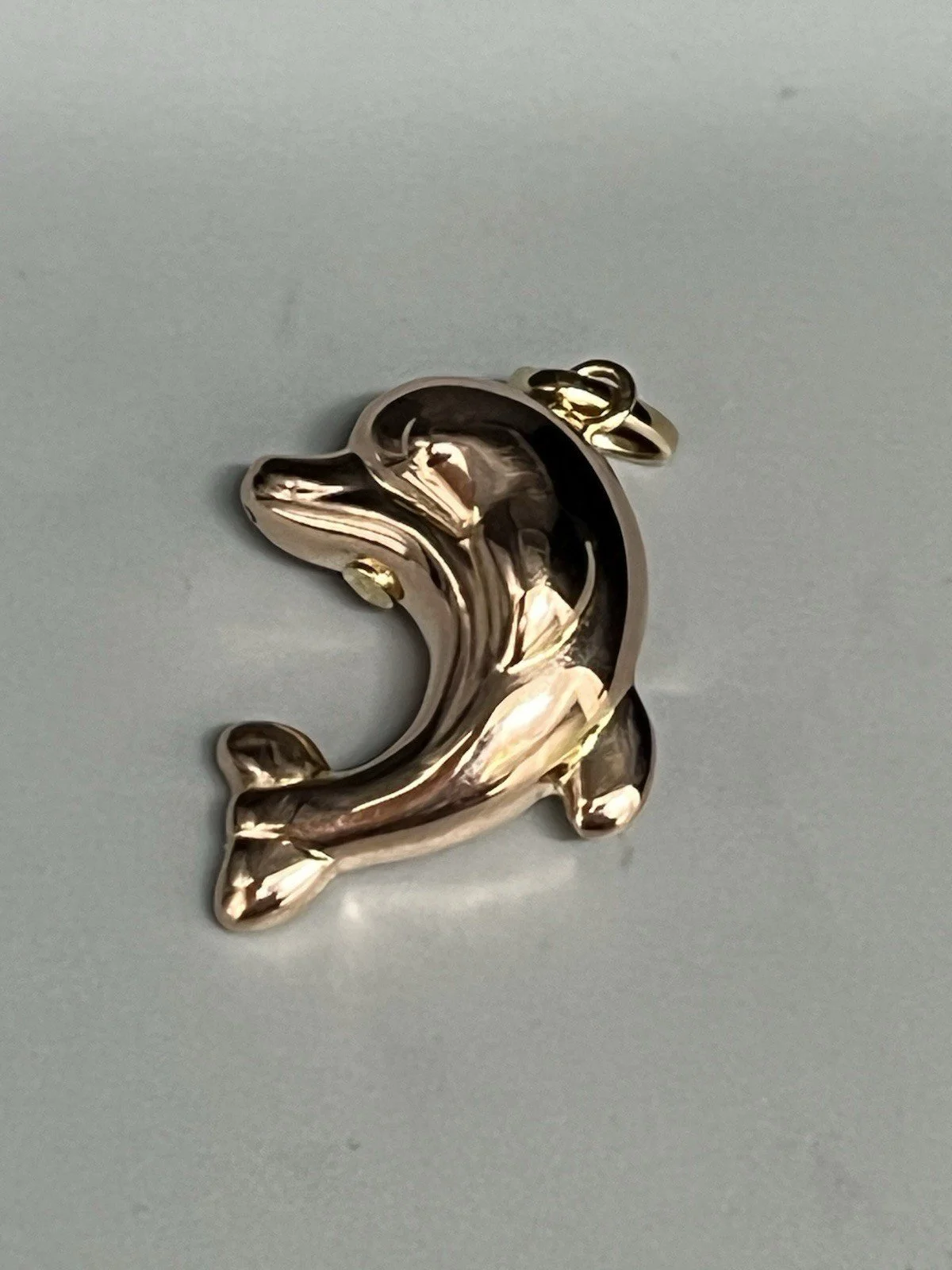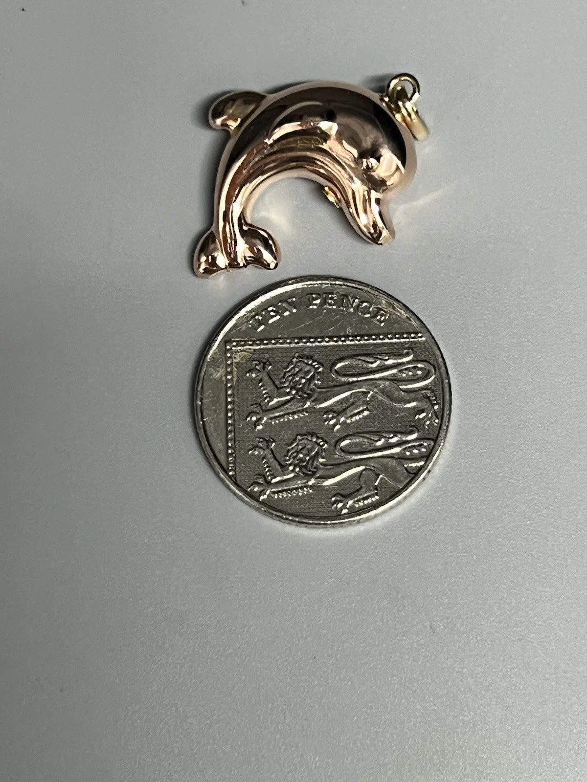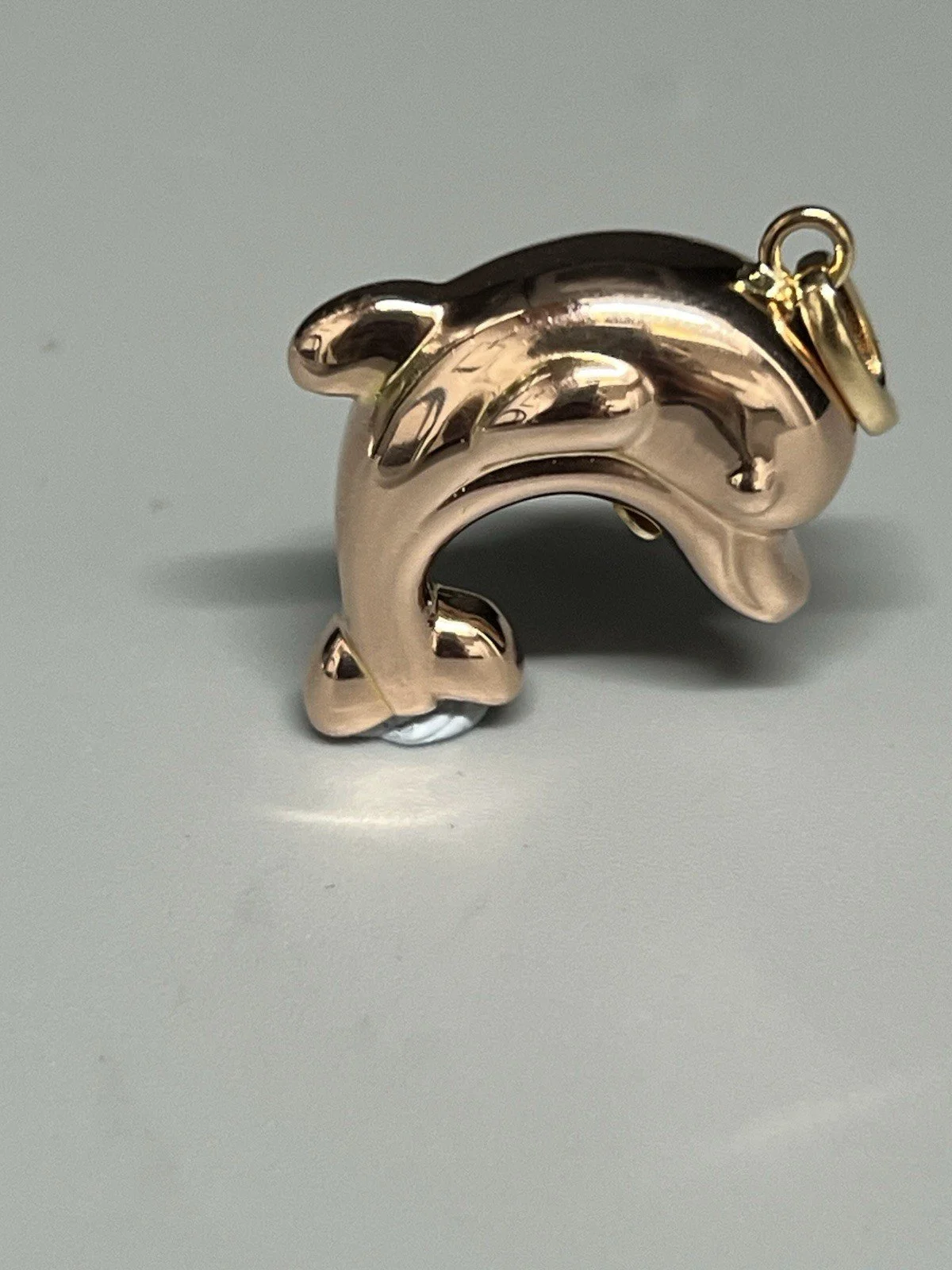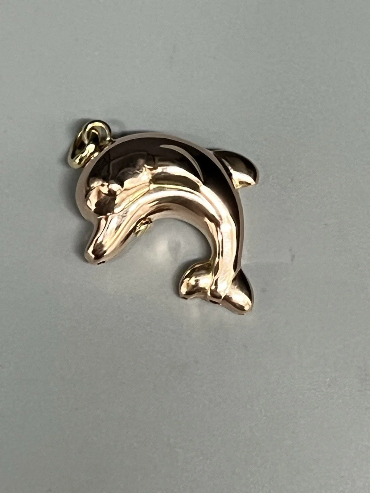 SHOP › 18CT ROSE GOLD DOLPHIN PENDANT Image 1 of 5 Image 2 of 5 Image 3 of 5 Image 4 of 5 Image 5 of 5 18CT ROSE GOLD DOLPHIN PENDANT £165.00 18CT ROSE GOLD DOLPHIN PENDANT 18ct rose gold dolphin pendant weight 1.5g length inc bale approx 30mm width approx 18mm depth approx 9mm hallmarked 750 Item Number K1134 Add To Cart Added! 18CT ROSE GOLD DOLPHIN PENDANT 18ct rose gold dolphin pendant weight 1.5g length inc bale approx 30mm width approx 18mm depth approx 9mm hallmarked 750 Item Number K1134