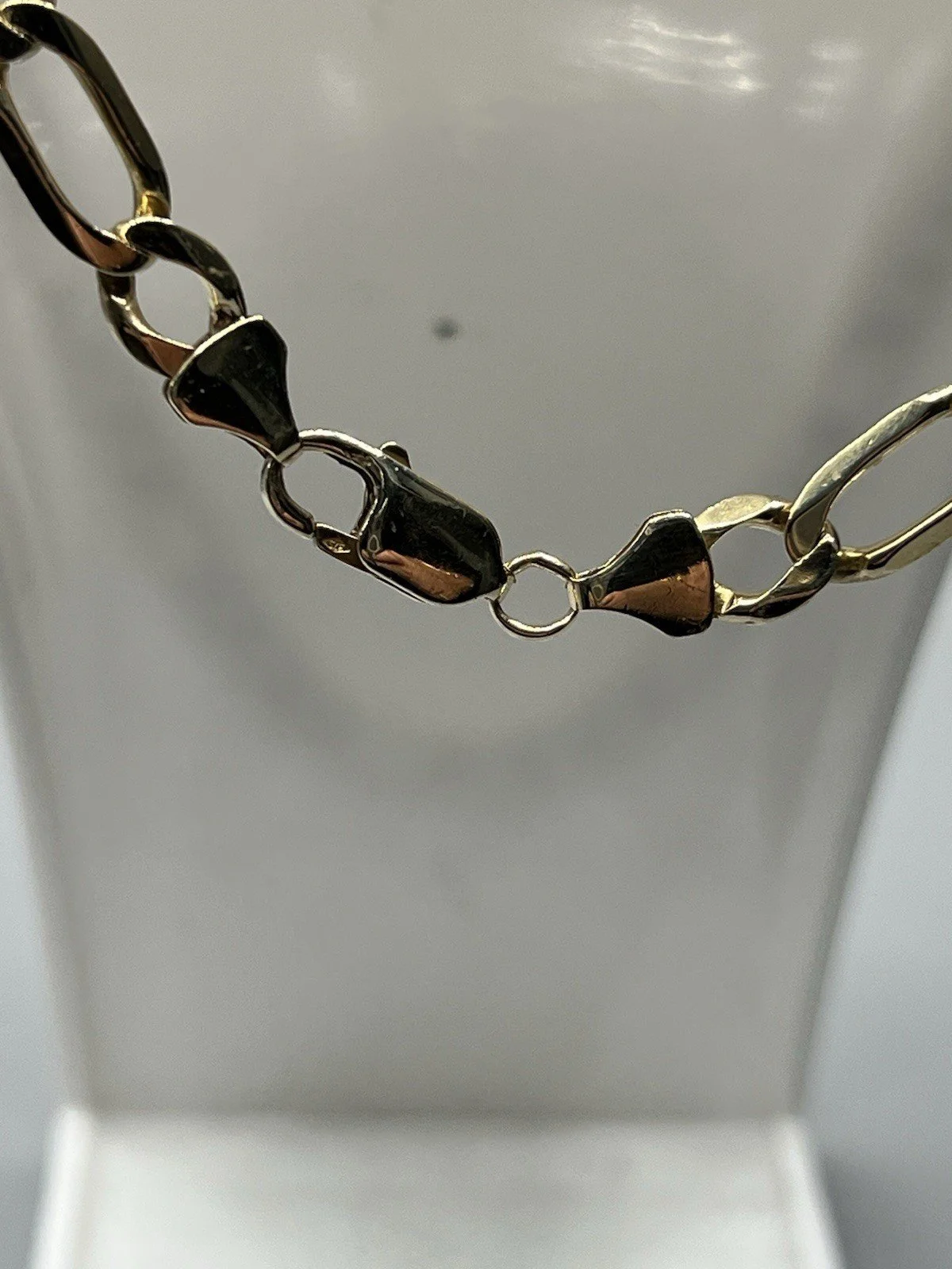 SHOP › 9ct Figaro Chain Image 1 of 5 Image 2 of 5 Image 3 of 5 Image 4 of 5 Image 5 of 5 9ct Figaro Chain £2,100.00 9ct Yellow Gold Gents Figaro Chain Length : 22 inch Weight : 37.1g Link Width : 8mm approx Item No : E1648 Add To Cart Added! 9ct Yellow Gold Gents Figaro Chain Length : 22 inch Weight : 37.1g Link Width : 8mm approx Item No : E1648