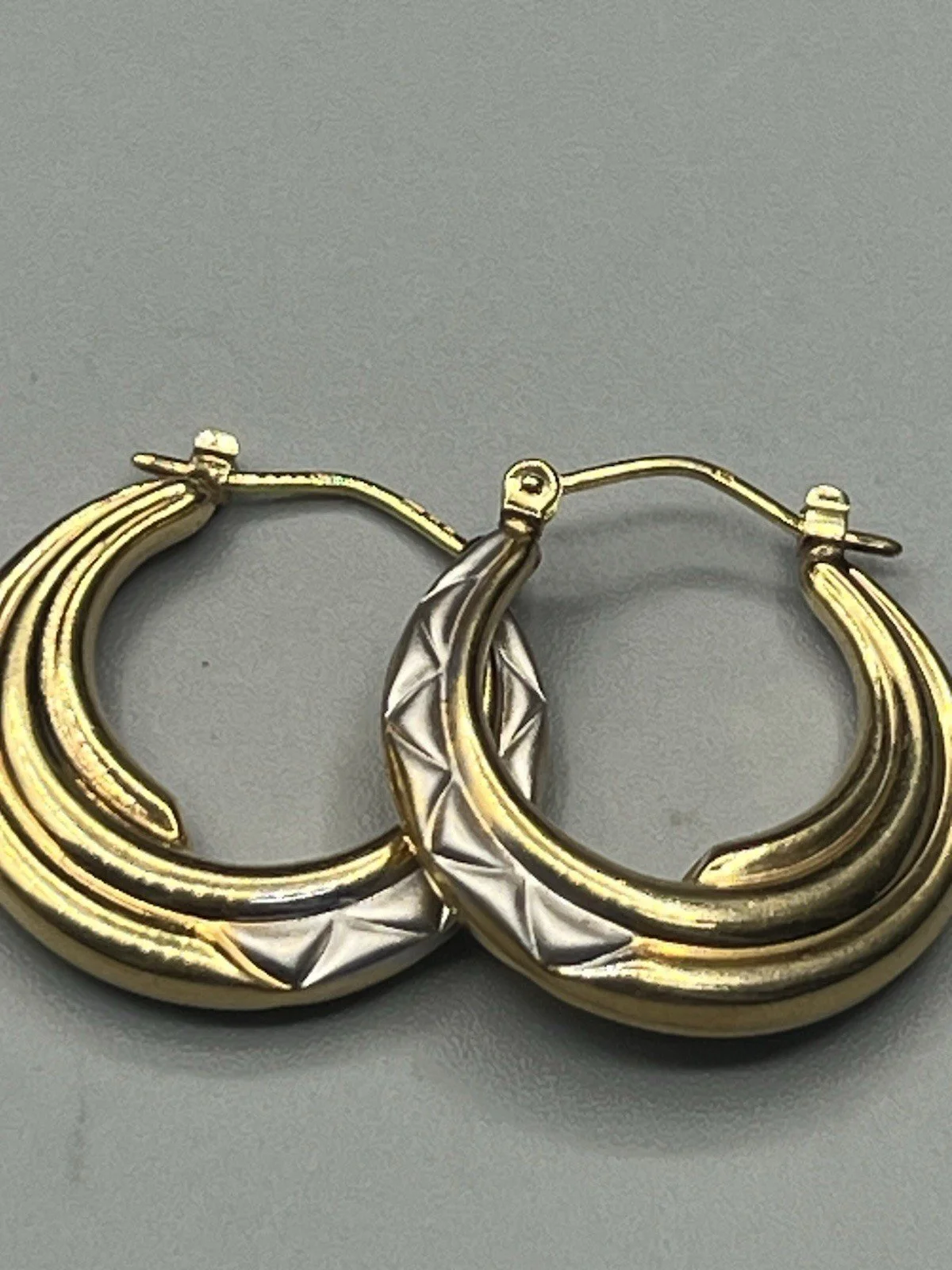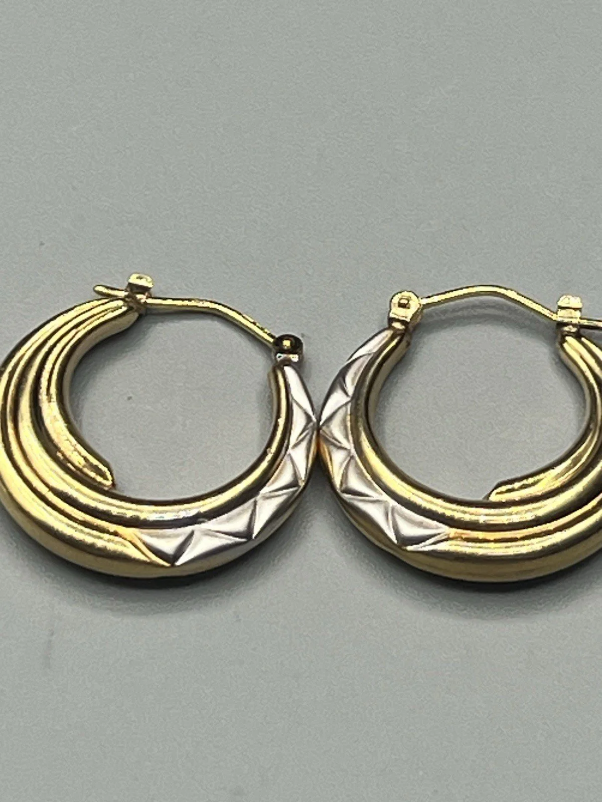 9CT GOLD 2 COLOUR HOOP EARRINGS