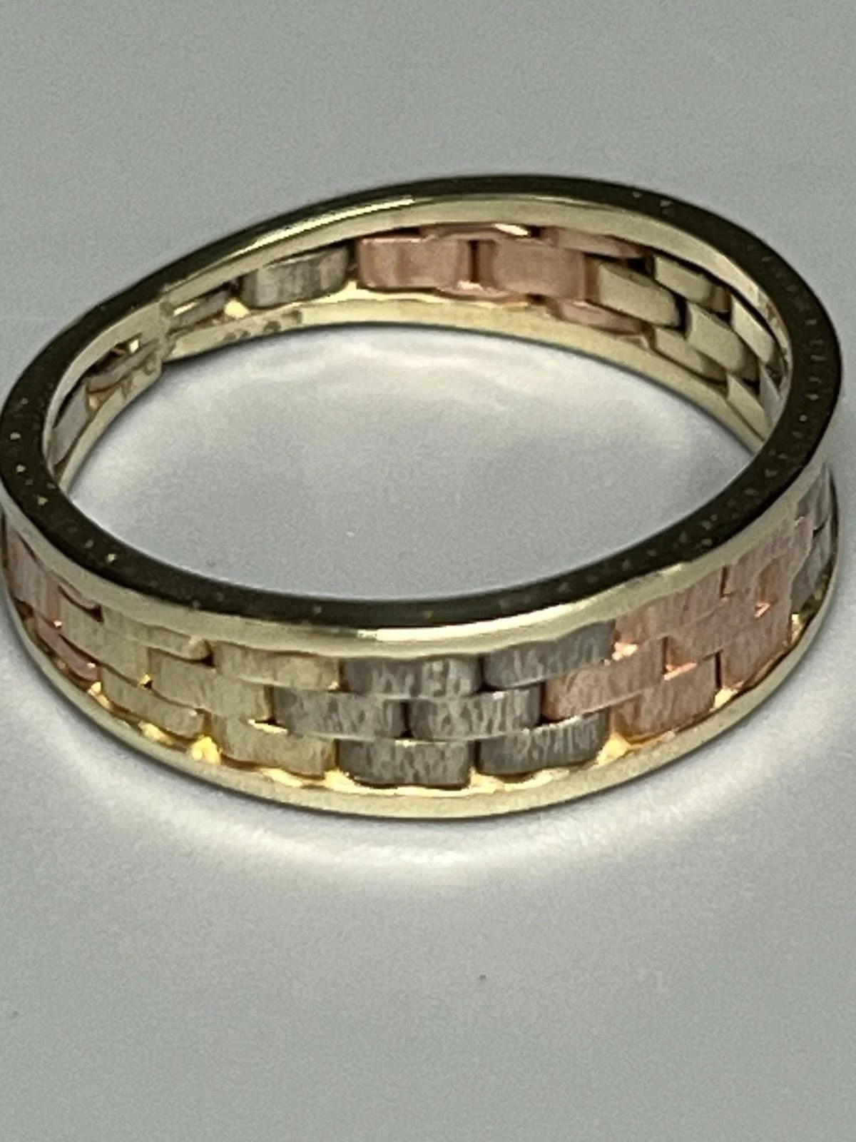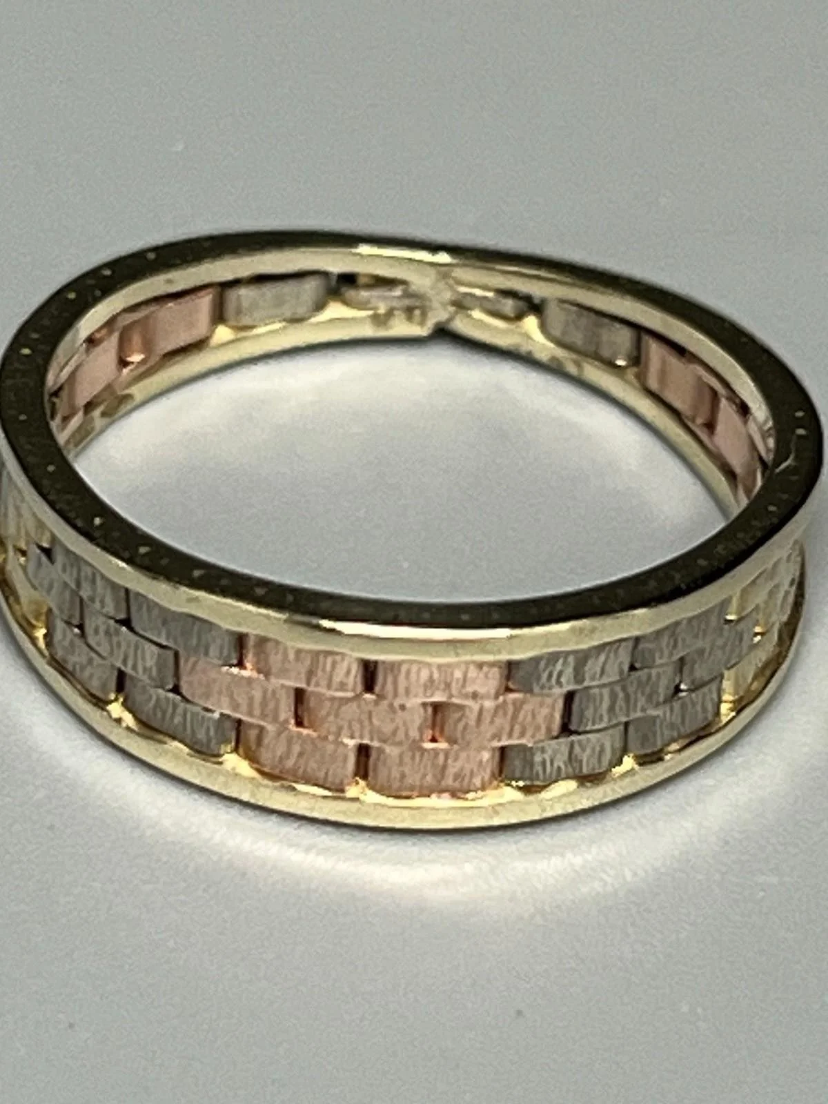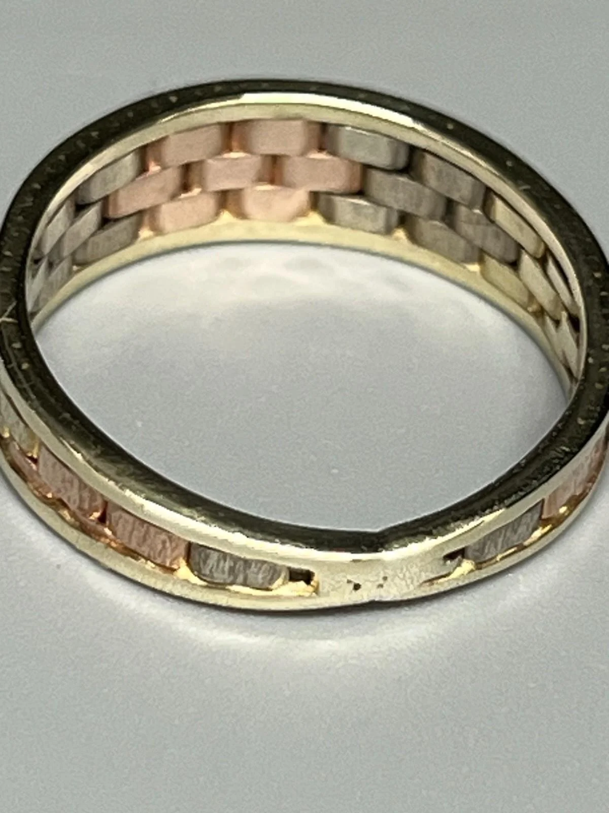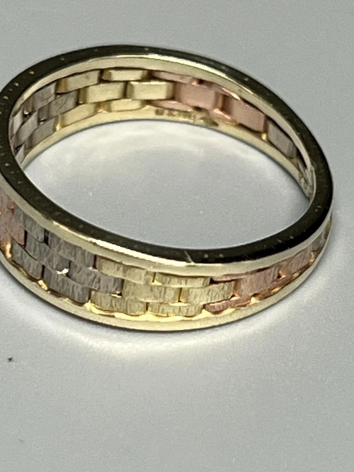 SHOP › 9CT GOLD 3 COLOUR RING Image 1 of 4 Image 2 of 4 Image 3 of 4 Image 4 of 4 9CT GOLD 3 COLOUR RING £170.00 9CT GOLD 3 COLOUR RING 9ct gold 3 colour ring, rose gold, white gold and yellow gold weight 2.5g size M width approx 5mm fully hallmarked Item Number D922 Add To Cart Added! 9CT GOLD 3 COLOUR RING 9ct gold 3 colour ring, rose gold, white gold and yellow gold weight 2.5g size M width approx 5mm fully hallmarked Item Number D922