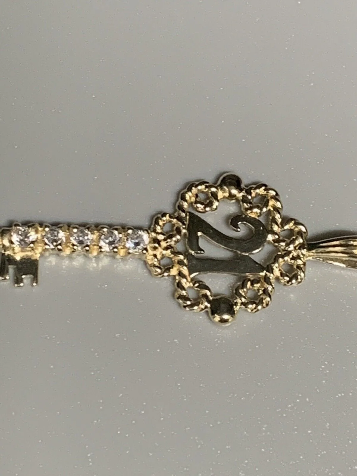 SHOP › 9ct GOLD CZ " 21 " KEY Image 1 of 5 Image 2 of 5 Image 3 of 5 Image 4 of 5 Image 5 of 5 9ct GOLD CZ " 21 " KEY £160.00 9ct GOLD CZ " 21 " KEY PENDANT Ladies 9ct yellow gold pendant , Top is a scroll design with a " 21 " in centre. bottom half has 5 white cubic zirconia gemstones. Weight 2.7g Length approx 18mm Width approx 13 mm Item Number K1002 Add To Cart Added! 9ct GOLD CZ " 21 " KEY PENDANT Ladies 9ct yellow gold pendant , Top is a scroll design with a " 21 " in centre. bottom half has 5 white cubic zirconia gemstones. Weight 2.7g Length approx 18mm Width approx 13 mm Item Number K1002