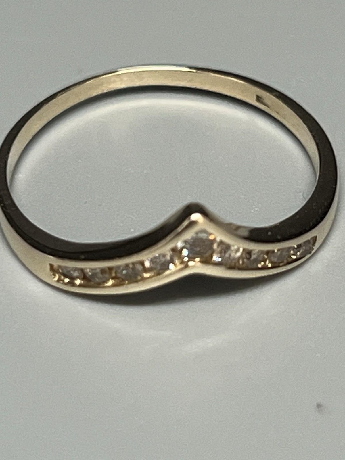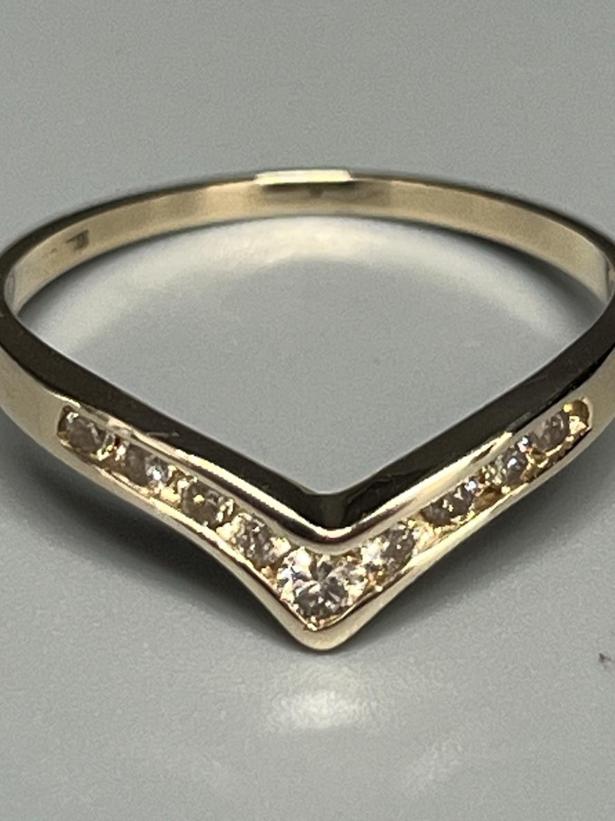 SHOP › 9ct GOLD DIAMOND WISHBONE RING Image 1 of 8 Image 2 of 8 Image 3 of 8 Image 4 of 8 Image 5 of 8 Image 6 of 8 Image 7 of 8 Image 8 of 8 9ct GOLD DIAMOND WISHBONE RING £235.00 9ct GOLD DIAMOND WISHBONE RING Ladies 9ct yellow gold wishbone ring containing 9 white diamonds. Ring size Q Weight 1.7g Width at widest point approx 3mm Diamond weight 0.25pts Item Number A1282 Add To Cart Added! 9ct GOLD DIAMOND WISHBONE RING Ladies 9ct yellow gold wishbone ring containing 9 white diamonds. Ring size Q Weight 1.7g Width at widest point approx 3mm Diamond weight 0.25pts Item Number A1282