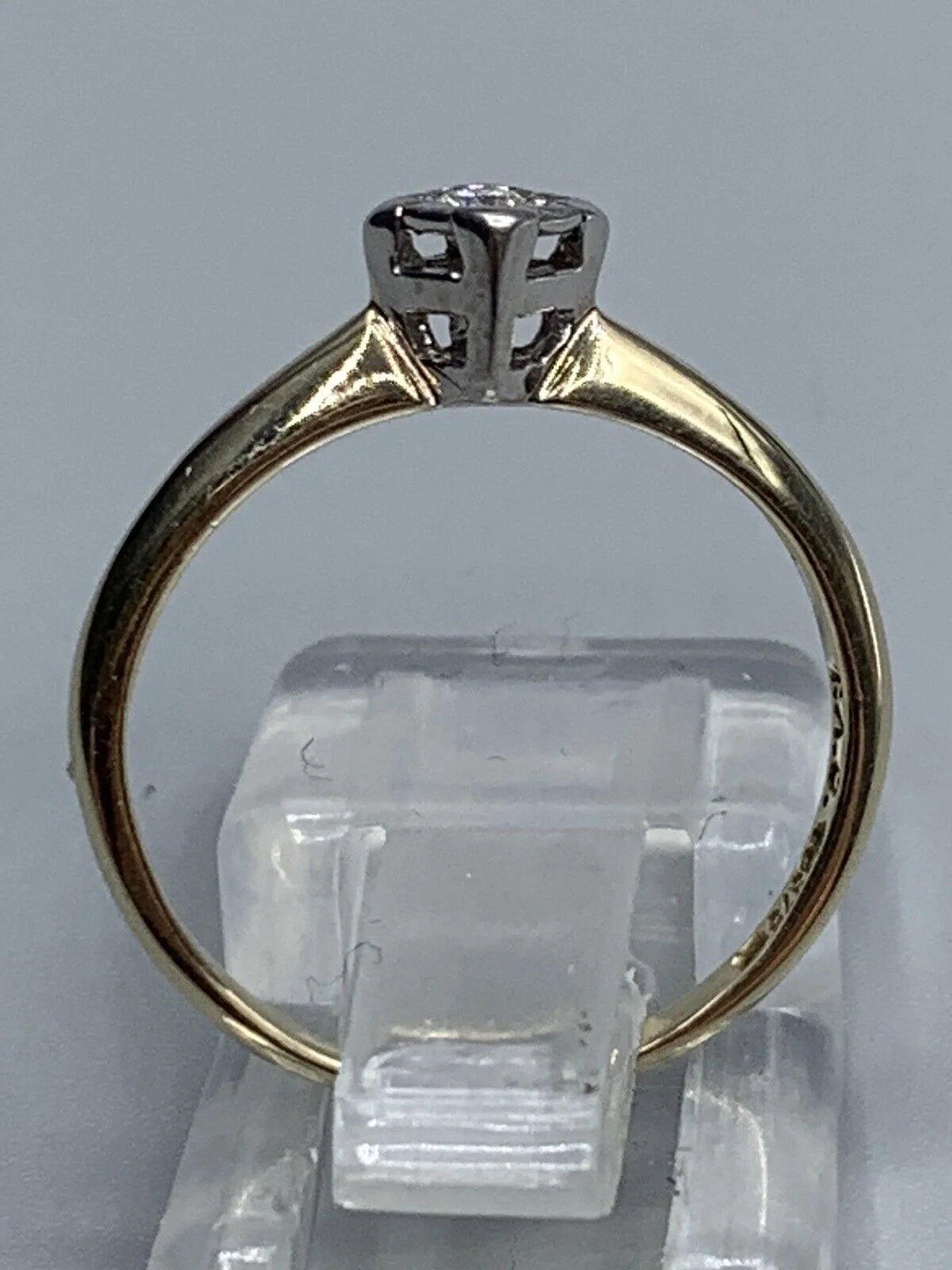 Very nice 9ct gold fully hallmarked single stone diamond ring , set in a square mount with a small round diamond in the centre, very pretty