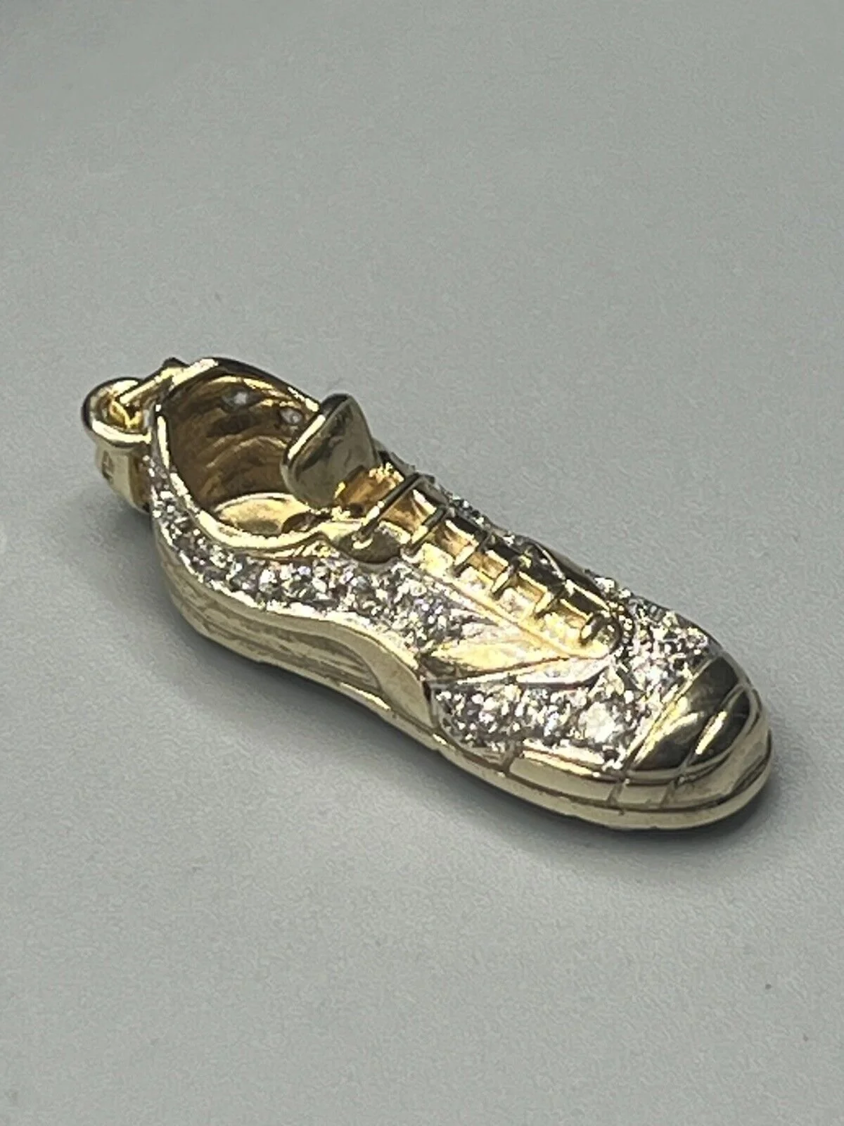 9ct GOLD STONE SET FOOTBALL BOOT PENDANT