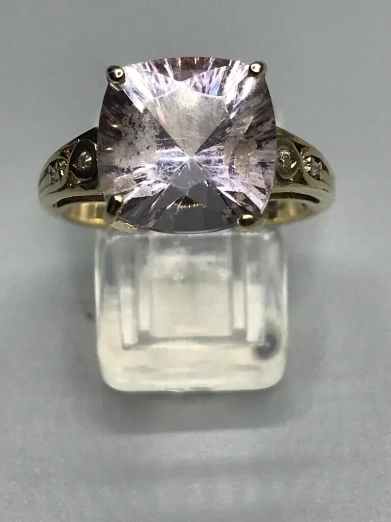 SHOP › 9ct Quartz Ring Image 1 of 5 Image 2 of 5 Image 3 of 5 Image 4 of 5 Image 5 of 5 9ct Quartz Ring £205.00 9ct LADIES LILAC QUARTZ RING Ladies 9ct gold ring with 2 small white stones on each shoulder and a larger lilac coloured quartz in centre. Ring size N Stone measures approx 10mm Weight 4.1g Item Number B501 Add To Cart Added! 9ct LADIES LILAC QUARTZ RING Ladies 9ct gold ring with 2 small white stones on each shoulder and a larger lilac coloured quartz in centre. Ring size N Stone measures approx 10mm Weight 4.1g Item Number B501
