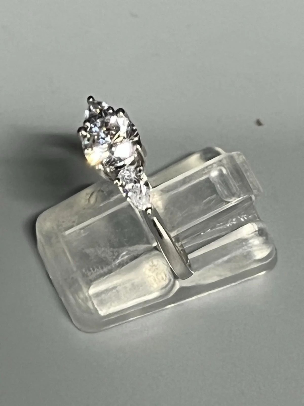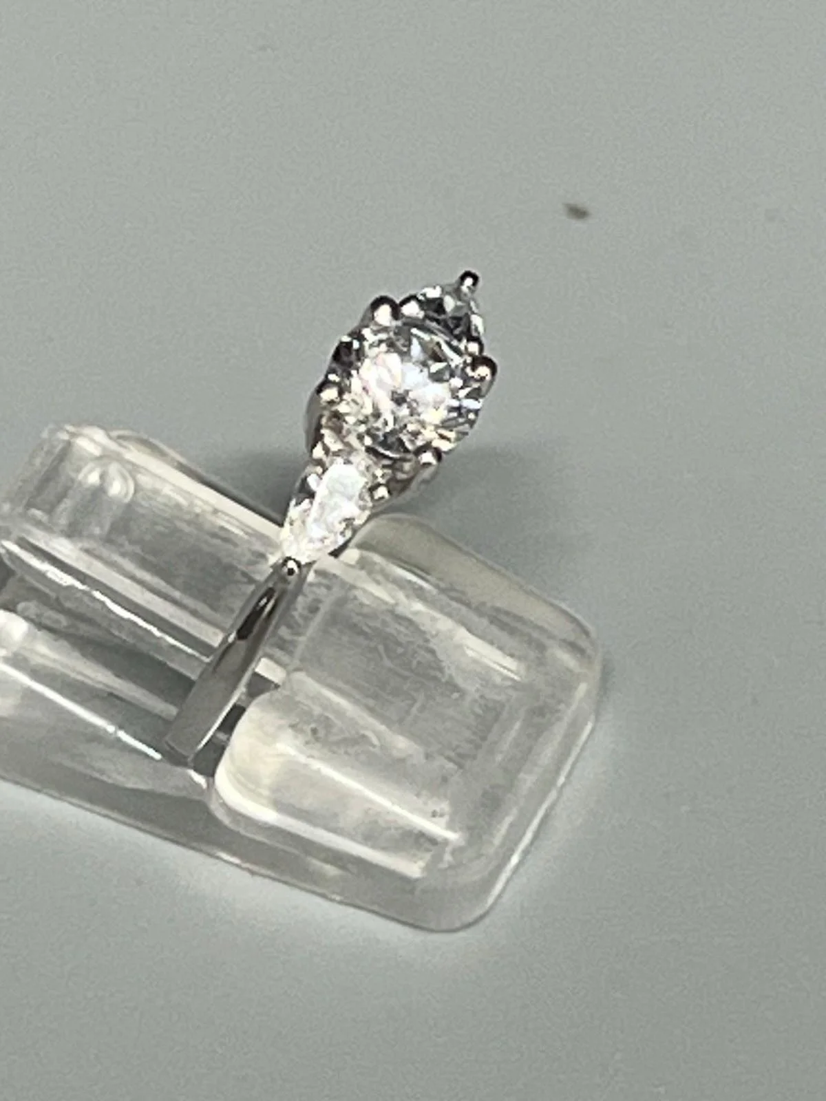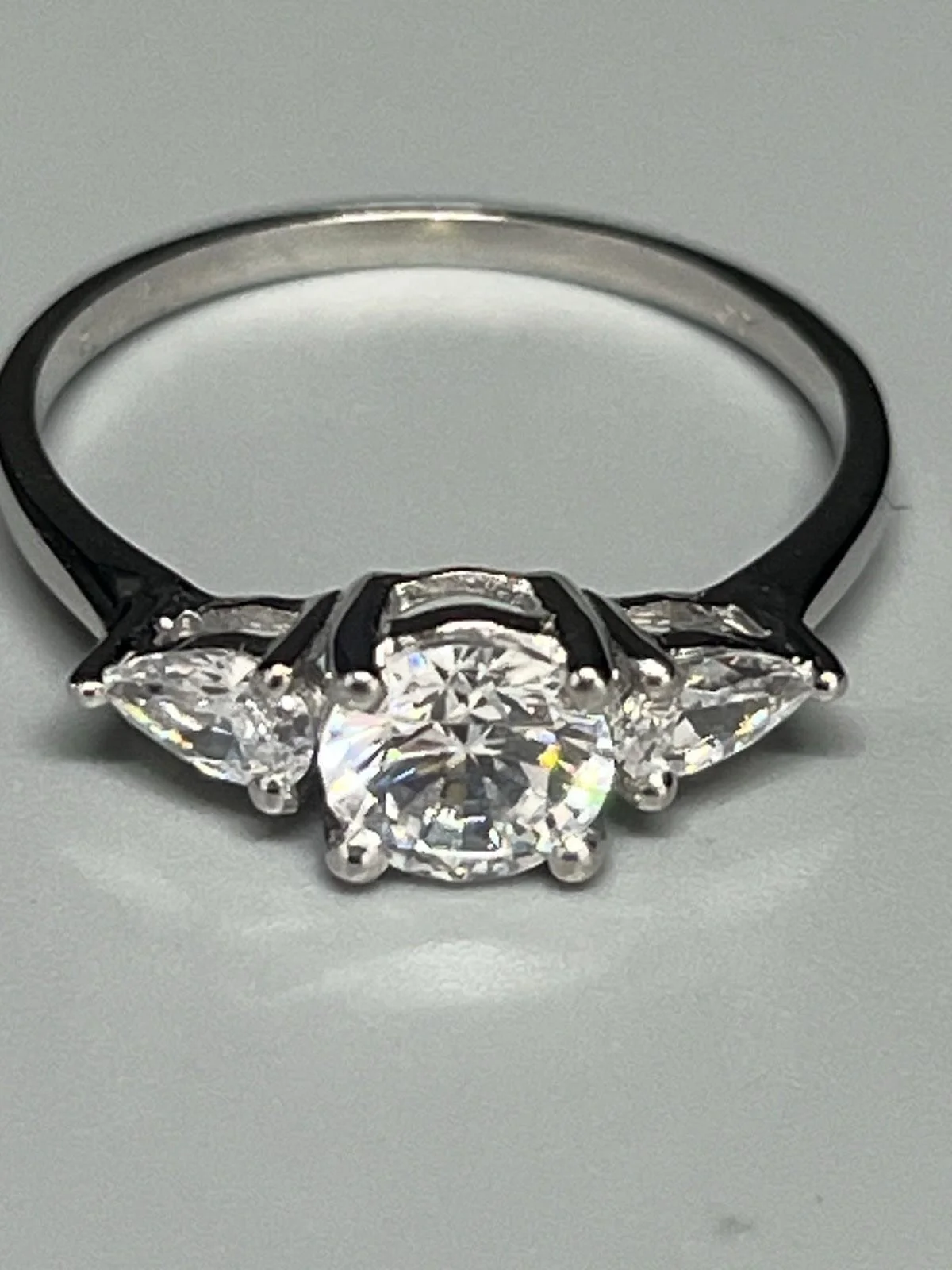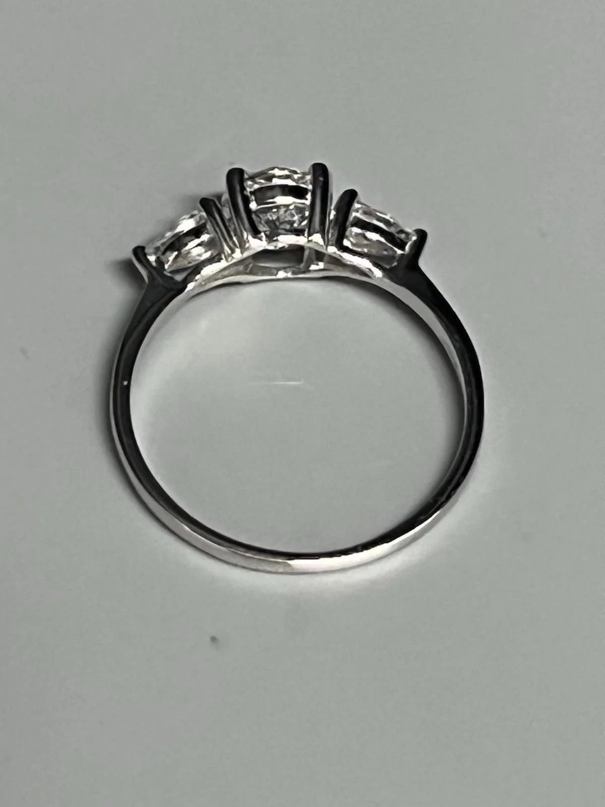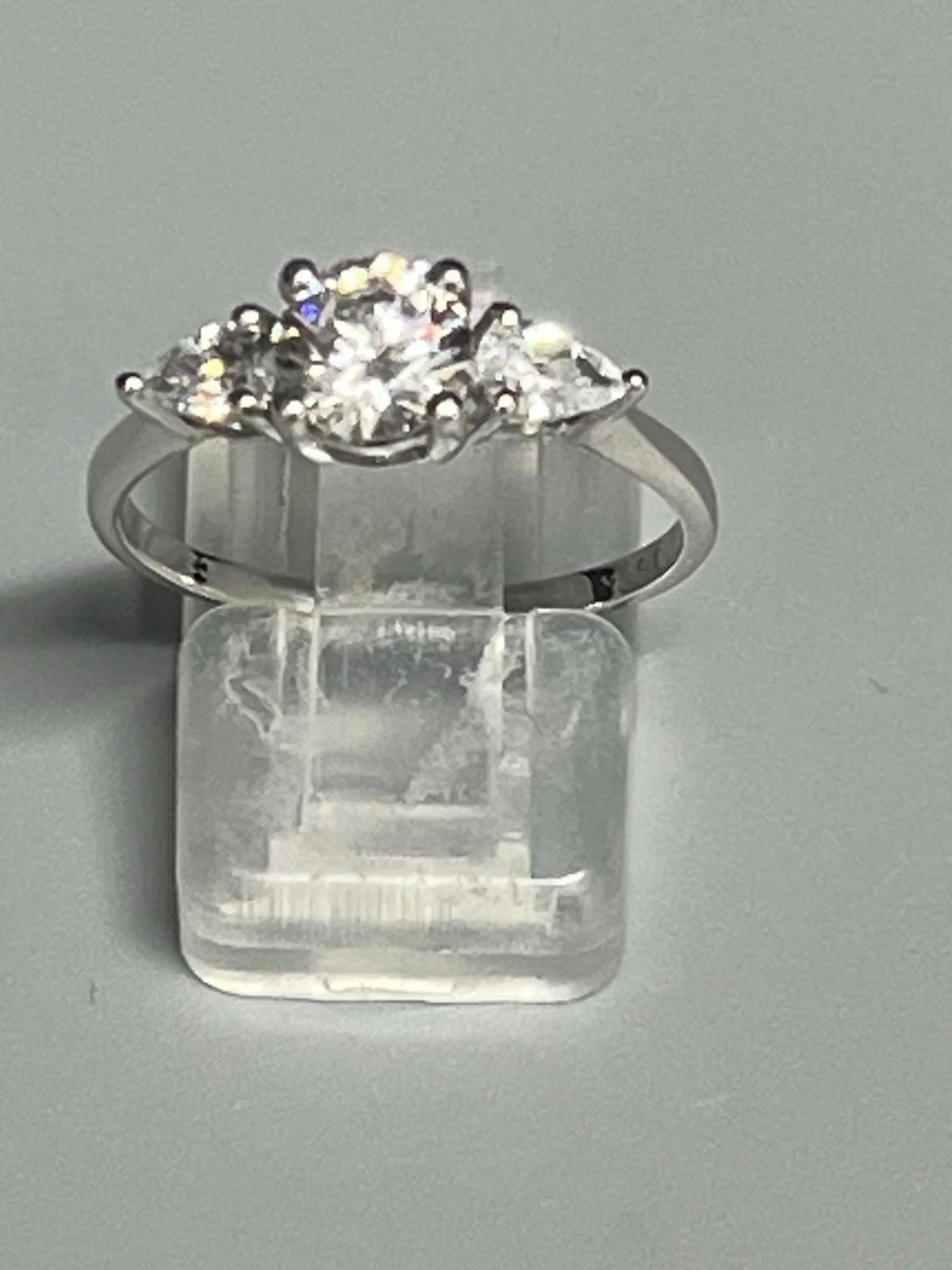 SHOP › 9CT WHITE GOLD 3 STONE CZ RING Image 1 of 5 Image 2 of 5 Image 3 of 5 Image 4 of 5 Image 5 of 5 9CT WHITE GOLD 3 STONE CZ RING £120.00 9CT WHITE GOLD 3 STONE CUBIC ZIRCONIA RING 9ct w/g 3 stone cz ring weight 2g size O 1 round and 2 pear shaped cz stones width at widest point approx 6mm fully hallmarked Item Number C1986 Add To Cart Added! 9CT WHITE GOLD 3 STONE CUBIC ZIRCONIA RING 9ct w/g 3 stone cz ring weight 2g size O 1 round and 2 pear shaped cz stones width at widest point approx 6mm fully hallmarked Item Number C1986
