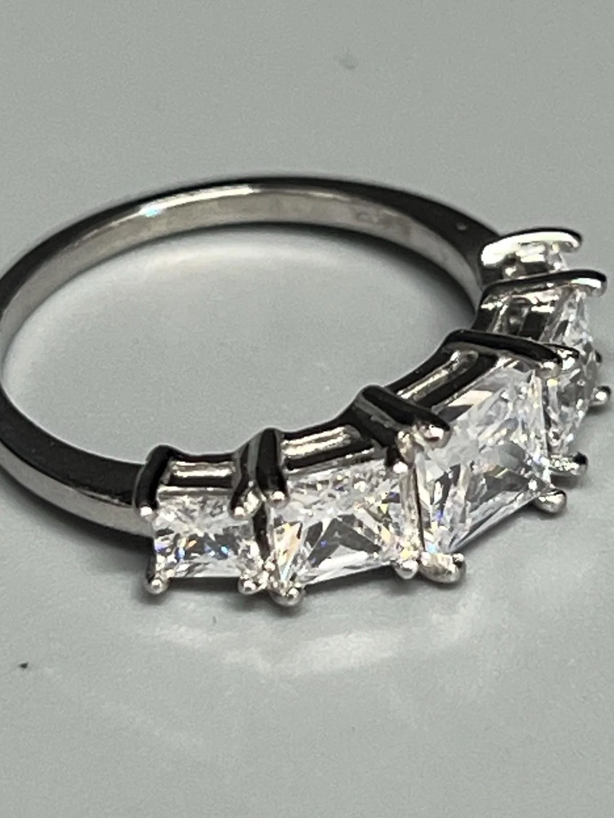 SHOP › 9CT WHITE GOLD 5 STONE SQUARE CZ RING Image 1 of 7 Image 2 of 7 Image 3 of 7 Image 4 of 7 Image 5 of 7 Image 6 of 7 Image 7 of 7 9CT WHITE GOLD 5 STONE SQUARE CZ RING £140.00 9CT WHITE GOLD 5 STONE CUBIC ZIRCONIA SQUARE RING 9ct w/g 5 stone cz square ring weight 2.3g size L1/2 width at widest point approx 6mm fully hallmarked Item Number C1988 Add To Cart Added! 9CT WHITE GOLD 5 STONE CUBIC ZIRCONIA SQUARE RING 9ct w/g 5 stone cz square ring weight 2.3g size L1/2 width at widest point approx 6mm fully hallmarked Item Number C1988