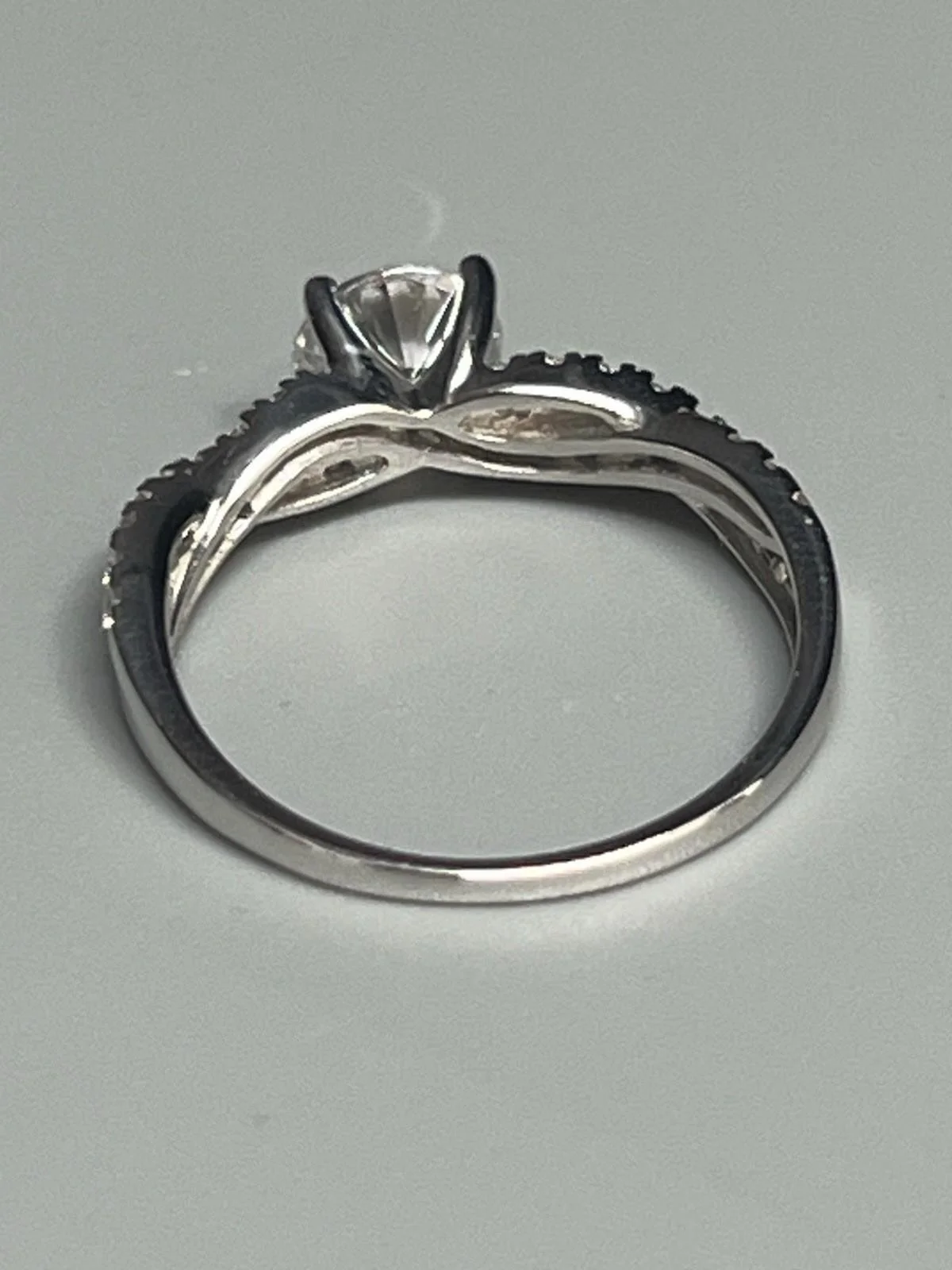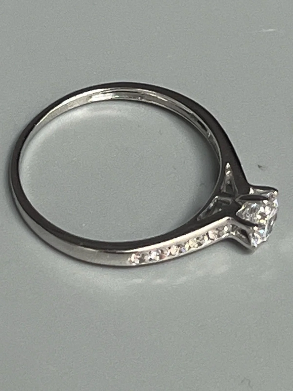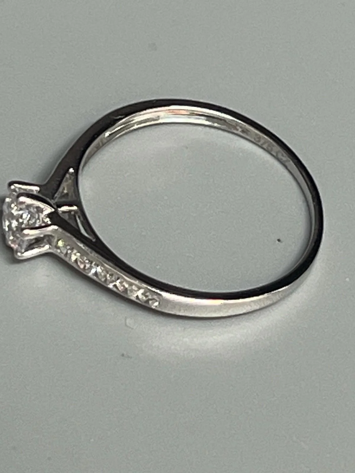 9ct WHITE GOLD CZ SOLITAIRE WITH ACCENTS