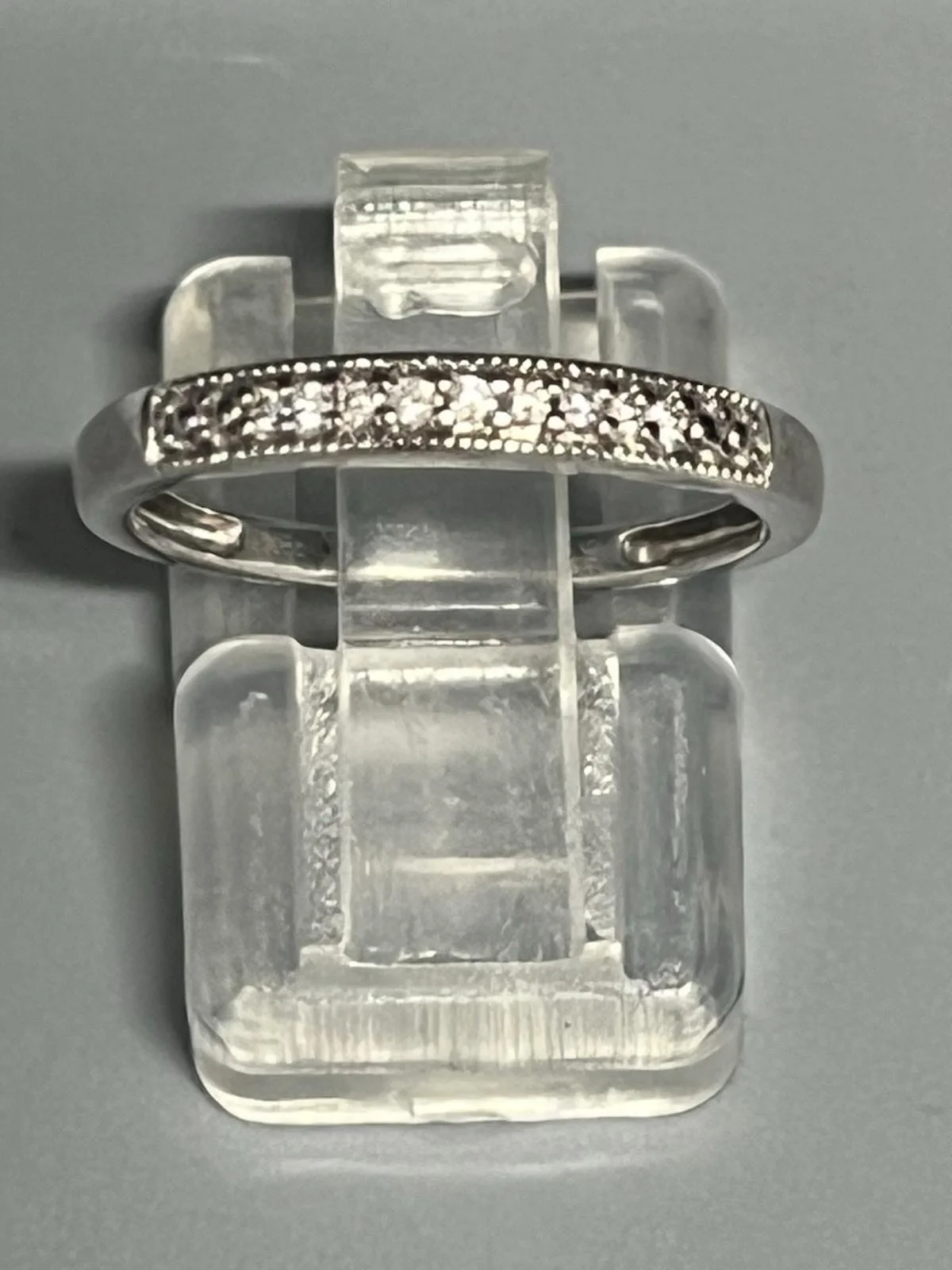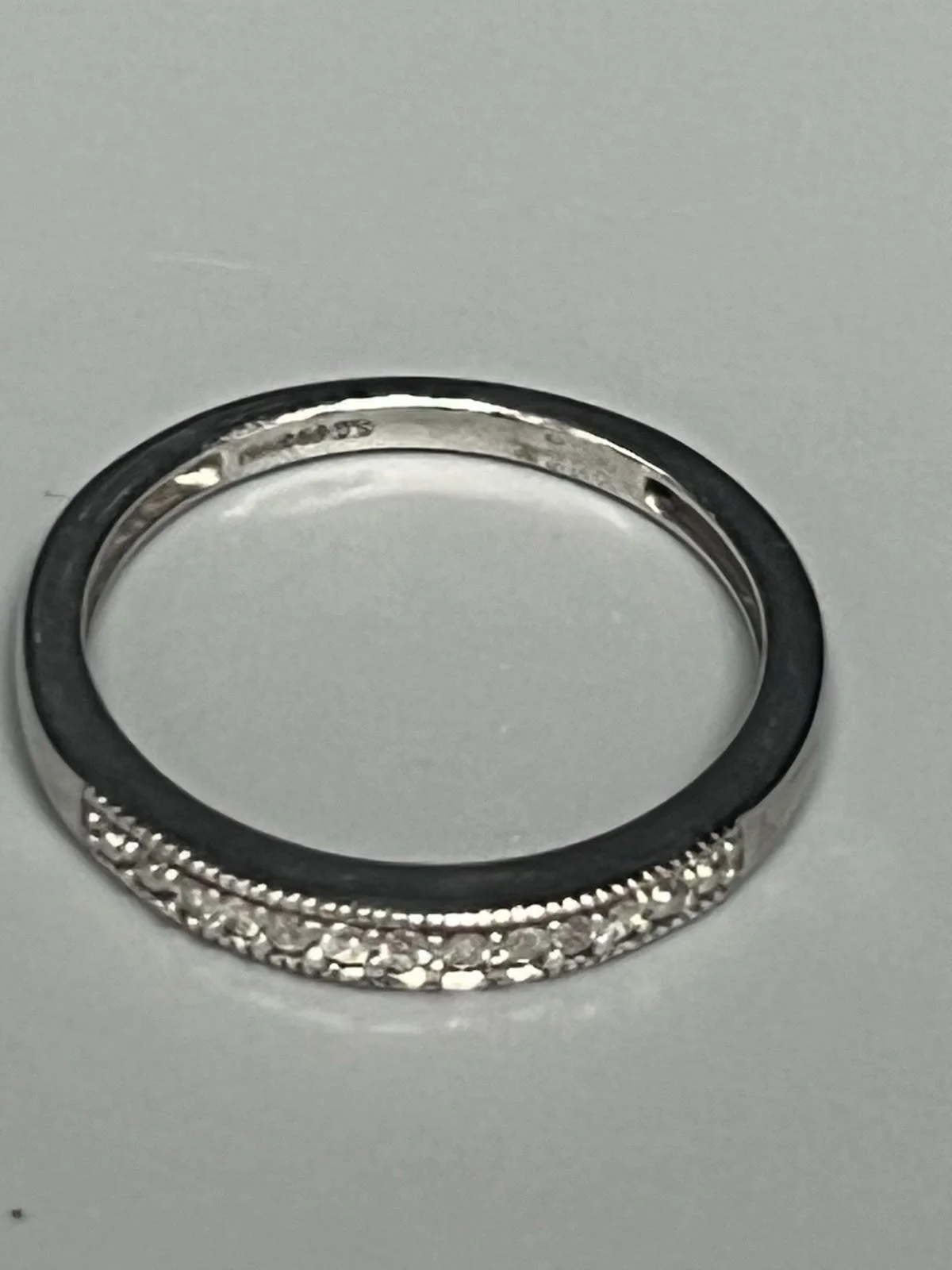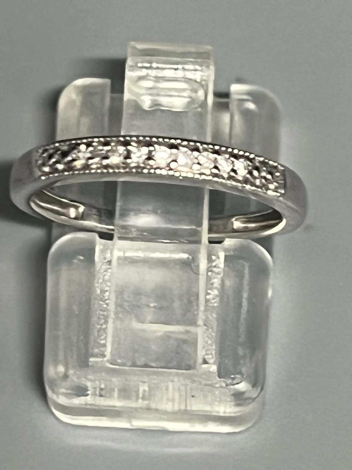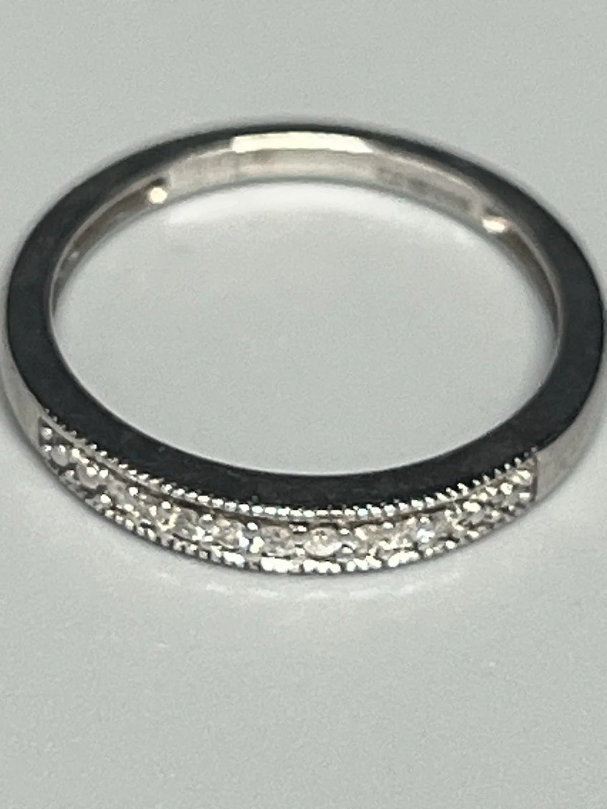 SHOP › 9ct WHITE GOLD DIAMOND HALF ETERNITY RING Image 1 of 9 Image 2 of 9 Image 3 of 9 Image 4 of 9 Image 5 of 9 Image 6 of 9 Image 7 of 9 Image 8 of 9 Image 9 of 9 9ct WHITE GOLD DIAMOND HALF ETERNITY RING £165.00 9ct WHITE GOLD DIAMOND HALF ETERNITY RING Ladies 9ct white gold half eternity ring containing 9 small white diamonds. Width 2mm Diamond weight 0.05pts Size J Weight 1.5g Item Number A1214 Add To Cart Added! 9ct WHITE GOLD DIAMOND HALF ETERNITY RING Ladies 9ct white gold half eternity ring containing 9 small white diamonds. Width 2mm Diamond weight 0.05pts Size J Weight 1.5g Item Number A1214
