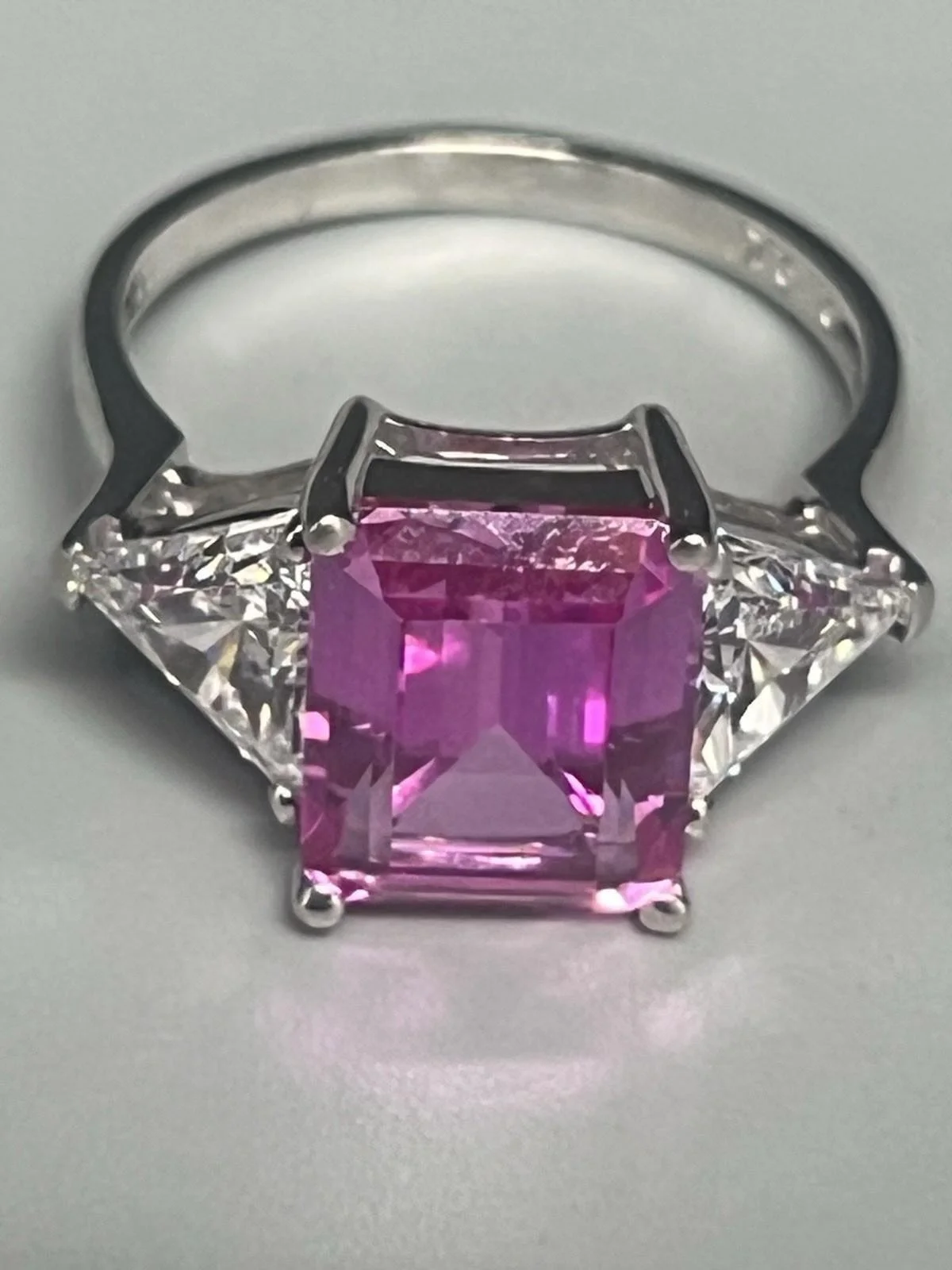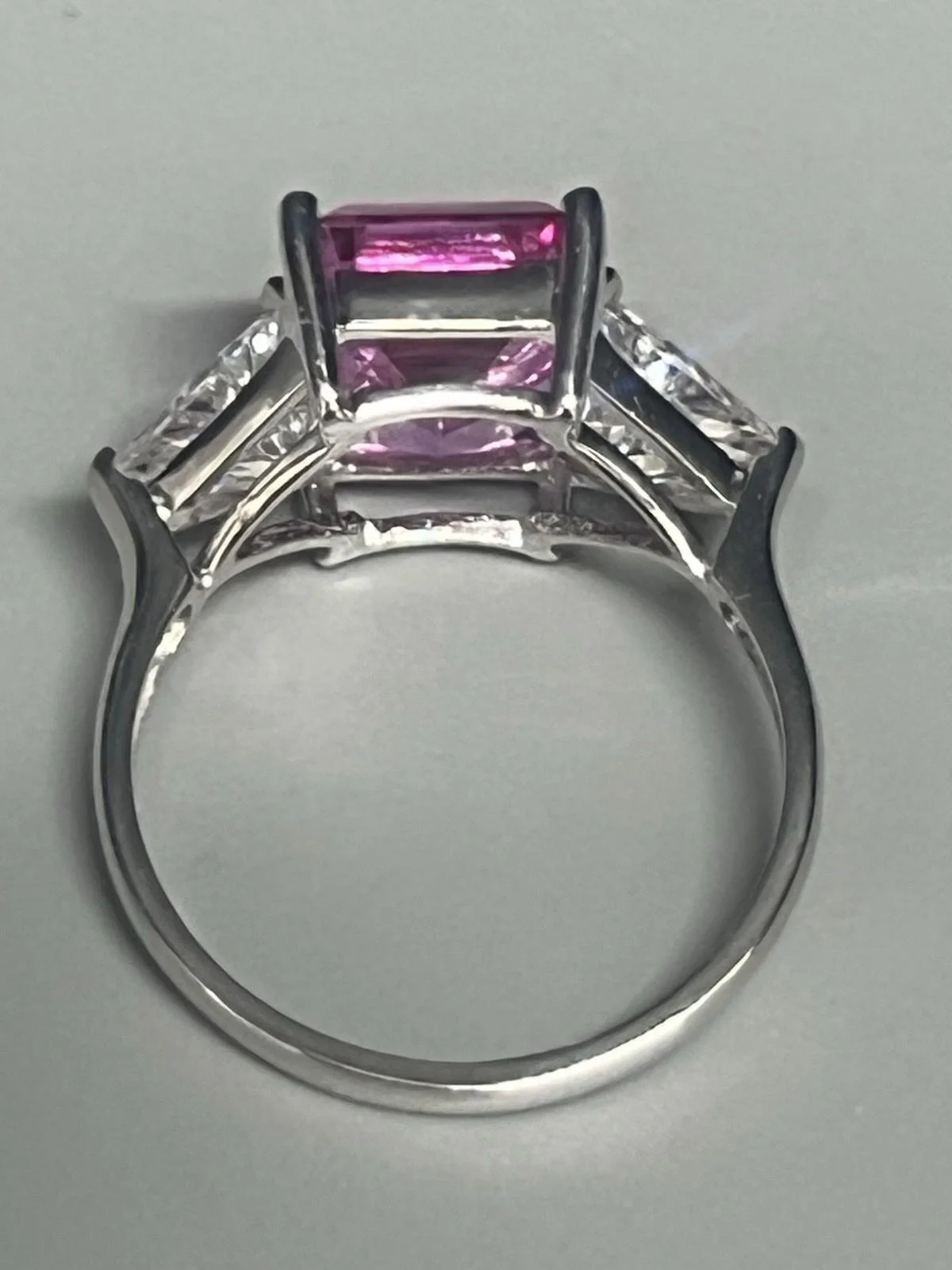 9CT WHITE GOLD PINK & WHITE CUBIC ZIRCONIA RING
