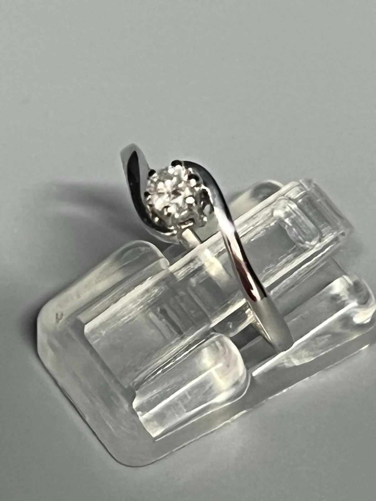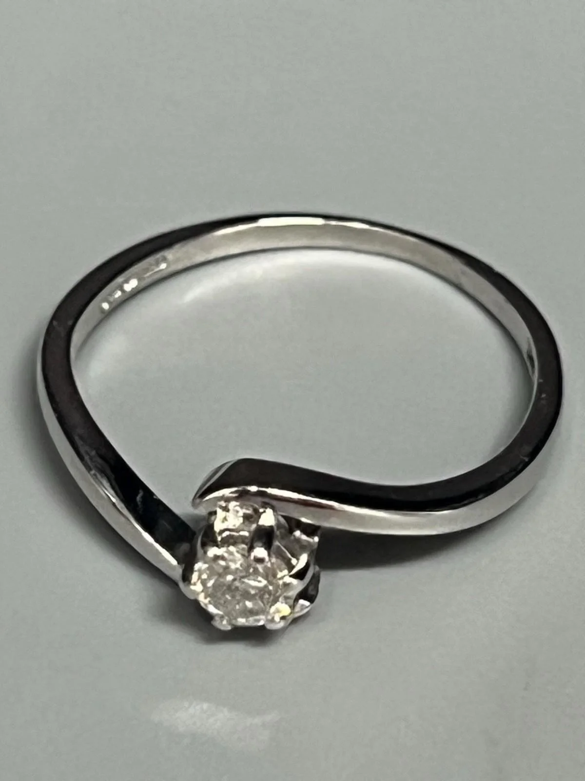 SHOP › 9ct WHITE GOLD TWIST DESIGN DIAMOND RING Image 1 of 7 Image 2 of 7 Image 3 of 7 Image 4 of 7 Image 5 of 7 Image 6 of 7 Image 7 of 7 9ct WHITE GOLD TWIST DESIGN DIAMOND RING £220.00 9ct WHITE GOLD TWIST DESIGN DIAMOND SOLITAIRE RING Ladies 9ct white gold diamond ring in a twist design, an arm at top and bottom of diamond. Ring size M Weight 1.8g Diamond weight 0.15pts Item Number A1269 Add To Cart Added! 9ct WHITE GOLD TWIST DESIGN DIAMOND SOLITAIRE RING Ladies 9ct white gold diamond ring in a twist design, an arm at top and bottom of diamond. Ring size M Weight 1.8g Diamond weight 0.15pts Item Number A1269