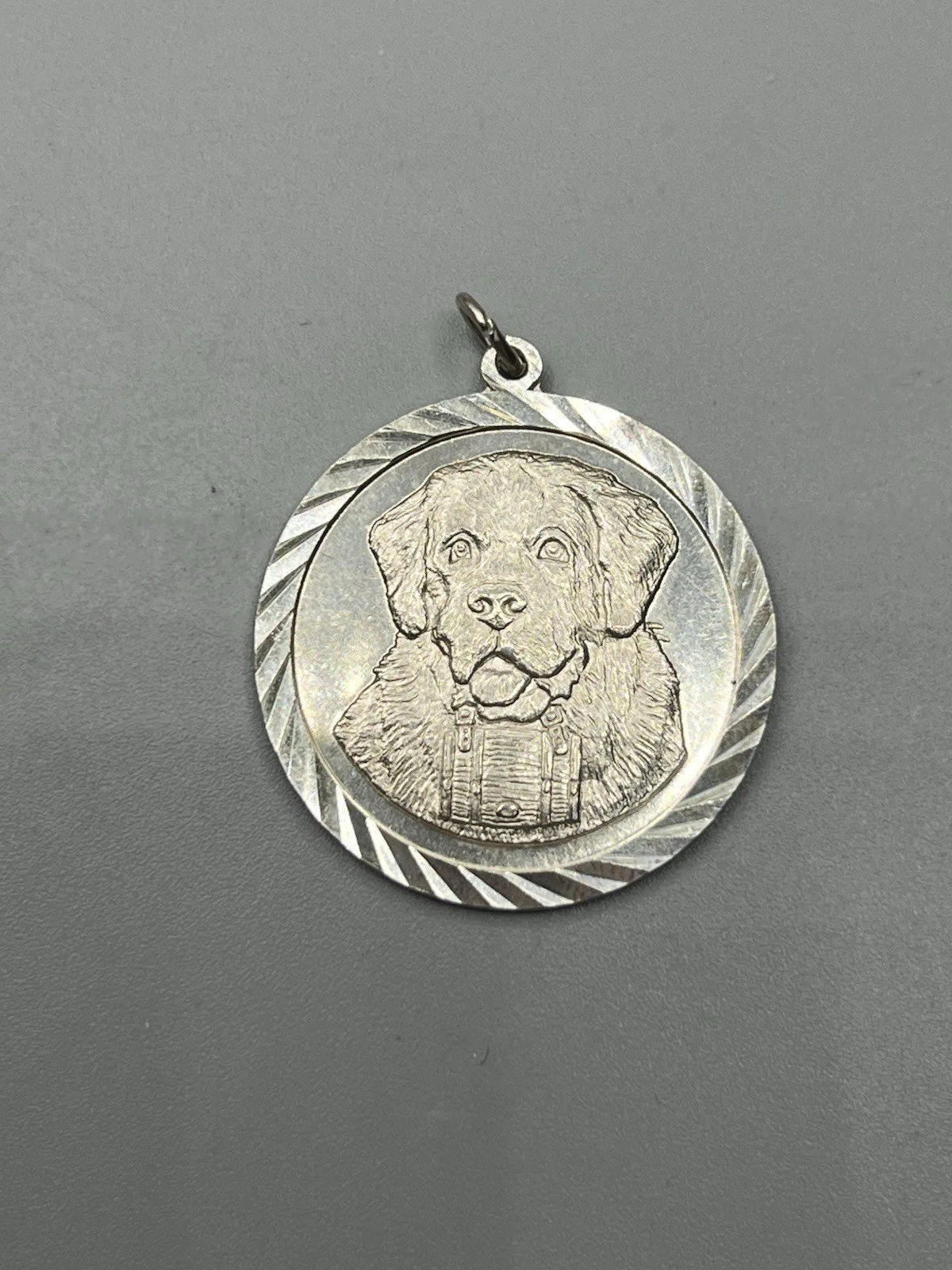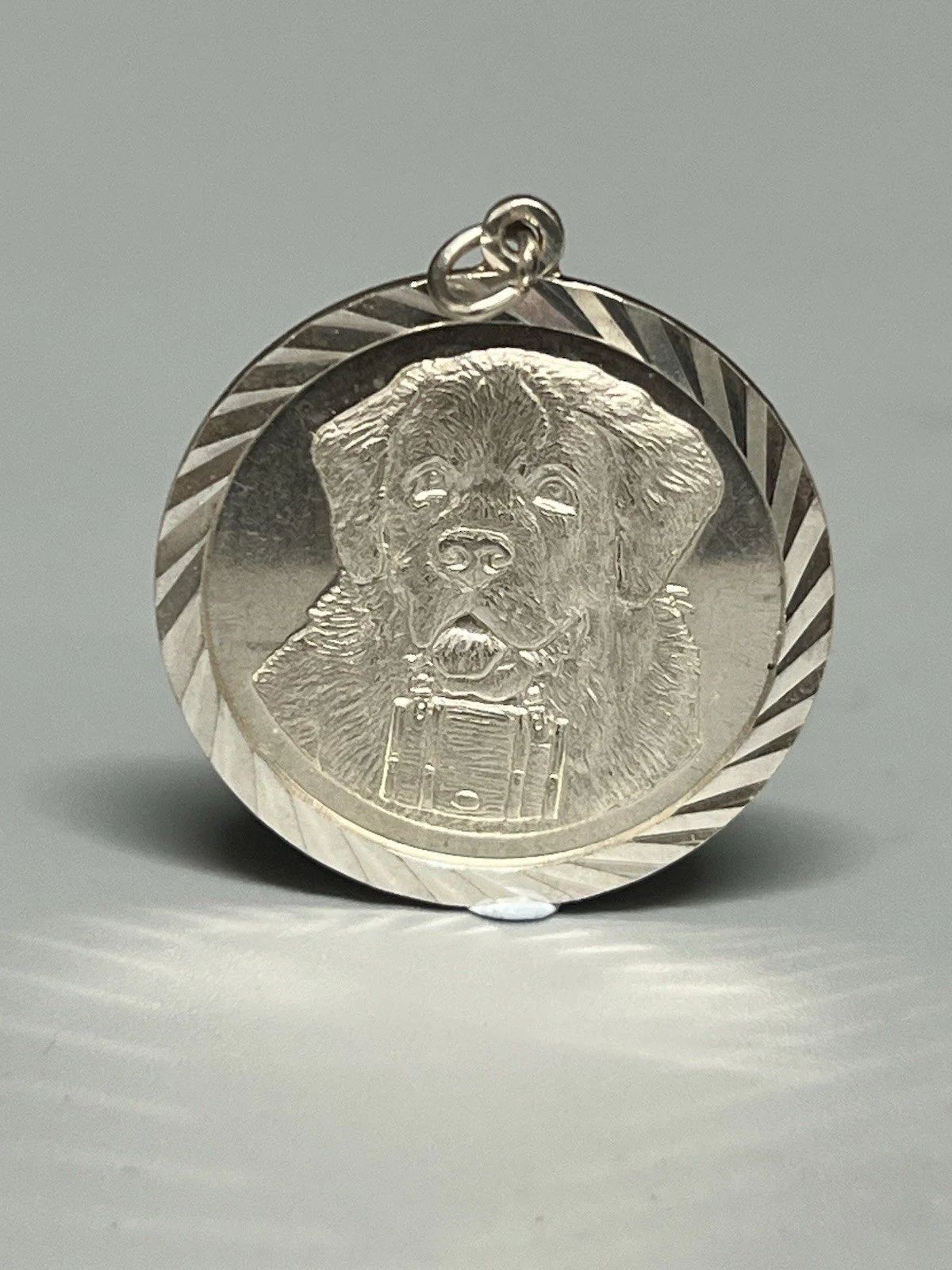 SHOP › STERLING SILVER St BERNARD PENDANT Image 1 of 4 Image 2 of 4 Image 3 of 4 Image 4 of 4 STERLING SILVER St BERNARD PENDANT £18.00 STERLING SILVER St BERNARD PENDANT sterling silver St bernard pendant weight 5.9g length inc ring approx 33mm width approx 28mm full hallmark stock Quantity: Add To Cart Added! STERLING SILVER St BERNARD PENDANT sterling silver St bernard pendant weight 5.9g length inc ring approx 33mm width approx 28mm full hallmark stock